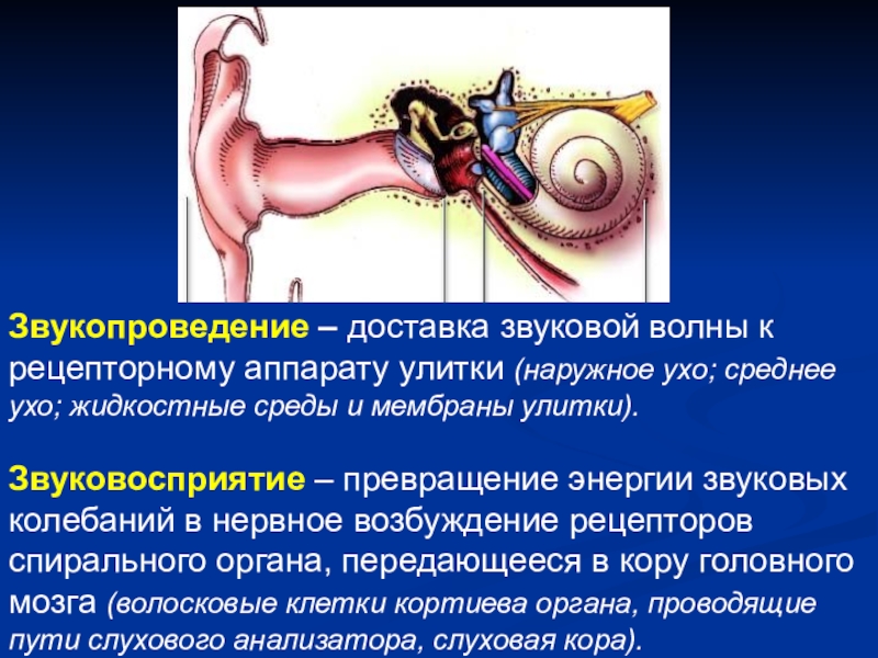 Звукопроведение – доставка звуковой волны к рецепторному аппарату улитки (наружное