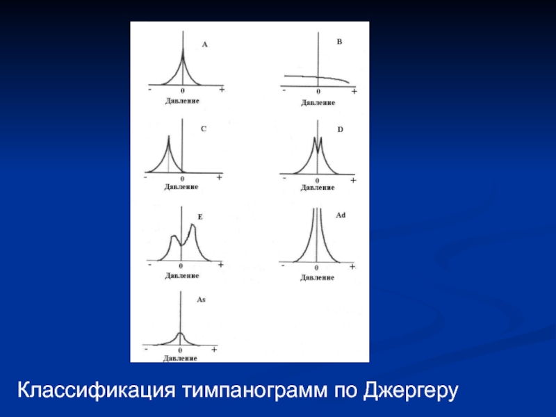 Слайд 44 Классификация тимпанограмм по Джергеру