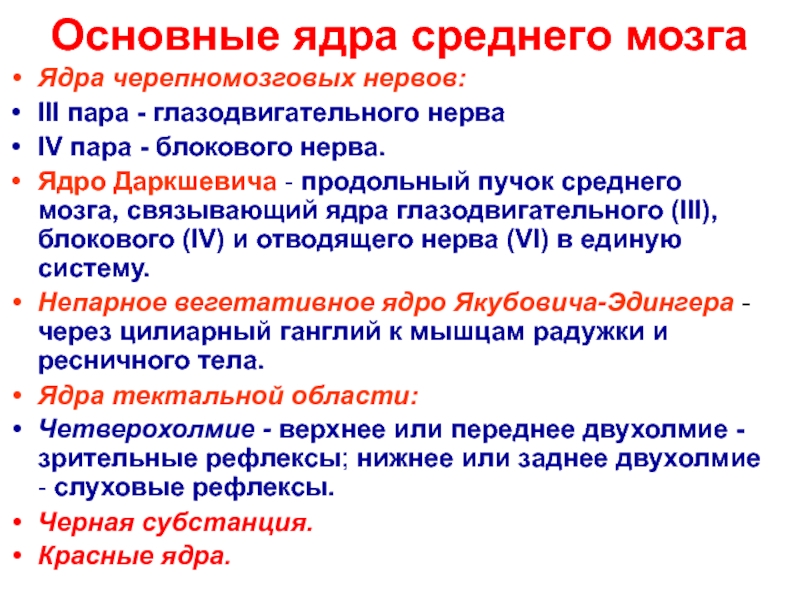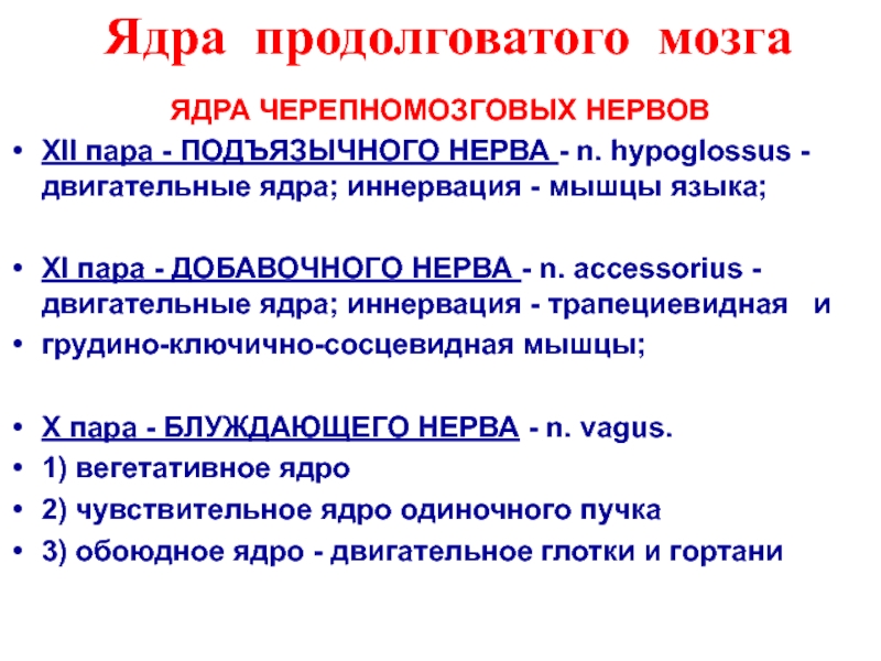 ЯДРА ЧЕРЕПНОМОЗГОВЫХ НЕРВОВ: