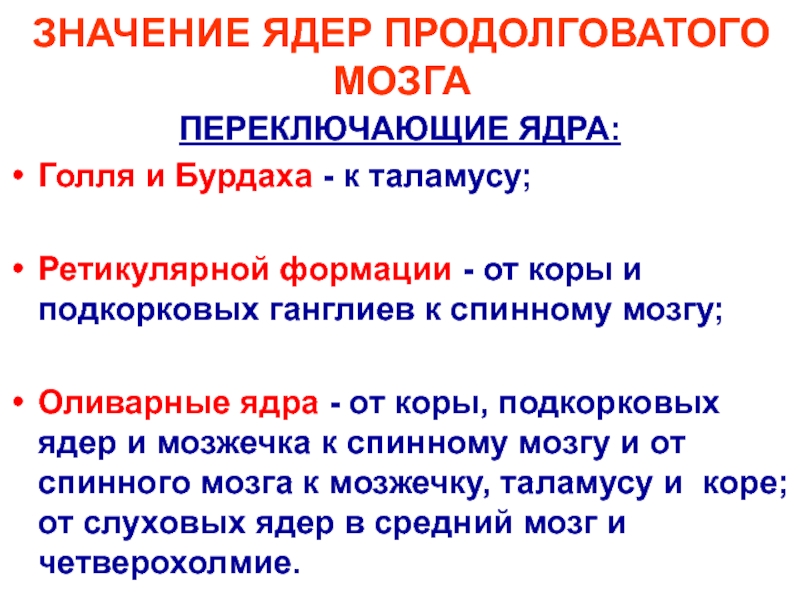 Слайд 13ЗНАЧЕНИЕ ЯДЕР ПРОДОЛГОВАТОГО МОЗГА
