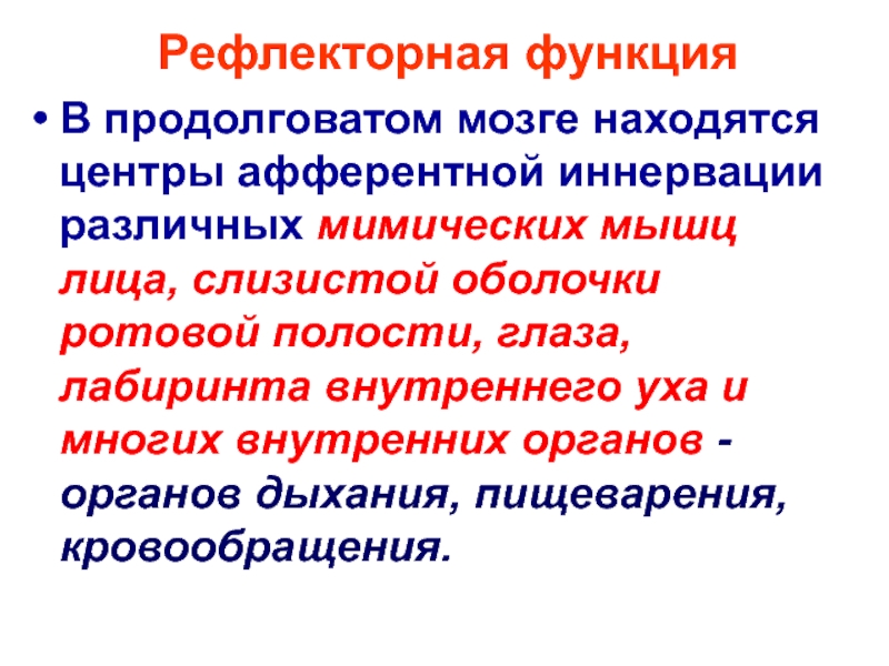 Слайд 8Осуществляется рефлекторная регуляция жизненно важных функций → акта дыхания, защитных