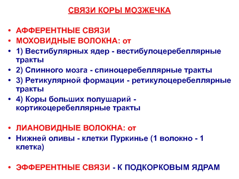 Слайд 33СВЯЗИ КОРЫ МОЗЖЕЧКА