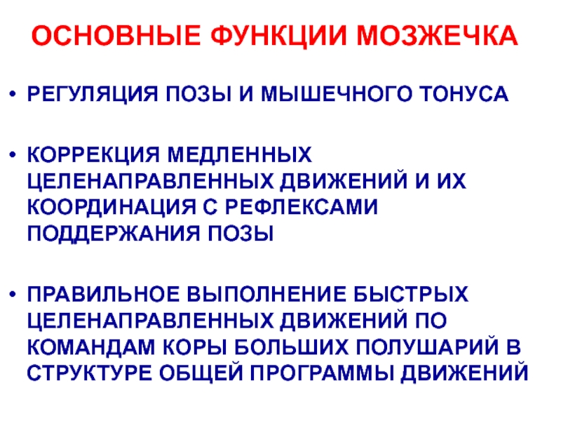 Слайд 40ОСНОВНЫЕ ФУНКЦИИ МОЗЖЕЧКА