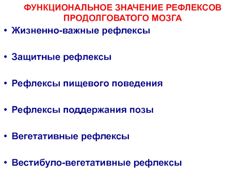 Слайд 17ФУНКЦИОНАЛЬНОЕ ЗНАЧЕНИЕ РЕФЛЕКСОВ ПРОДОЛГОВАТОГО МОЗГА