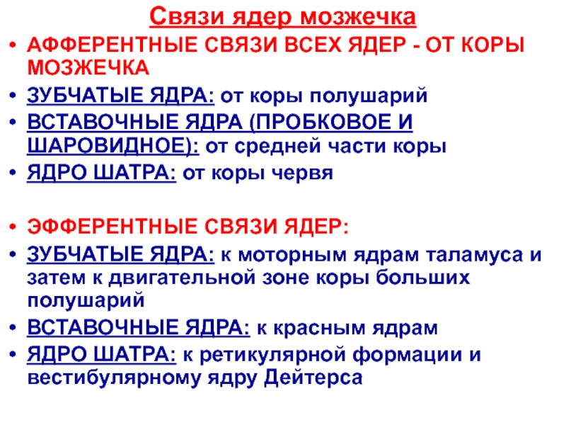 АФФЕРЕНТНЫЕ СВЯЗИ ВСЕХ ЯДЕР - ОТ КОРЫ МОЗЖЕЧКА