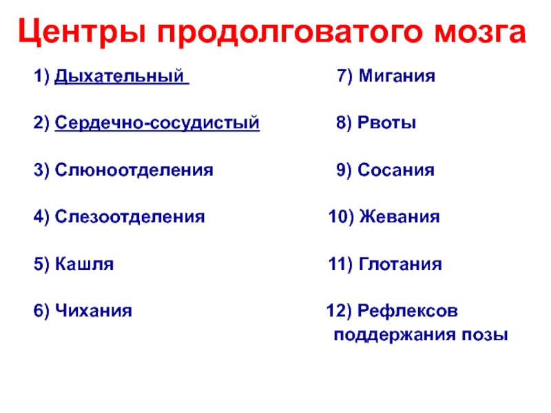 сосудистой деятельности, пищеварительного аппарата, рефлексов сосания, жевания, глотания, рвоты, моргания, слезотечения, потоотделения и т.п.