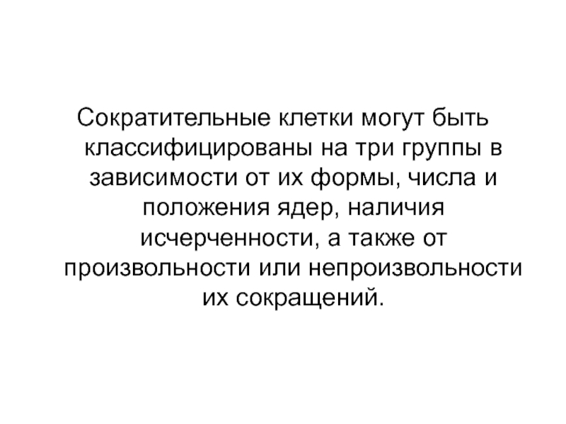 Слайд 3Сократительные клетки могут быть классифицированы на три группы в зависимости