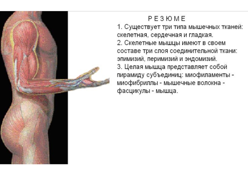 Слайд 11 Все три соединительнотканных слоя - эпимизий, перимизий и эндомизий