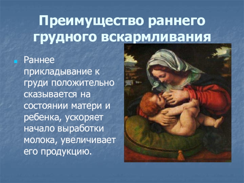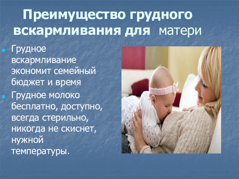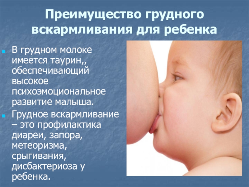 Слайд 12Преимущество грудного вскармливания для ребенка