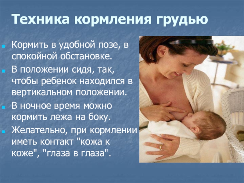 Желательно, при кормлении иметь контакт "кожа к коже", "глаза в глаза".
