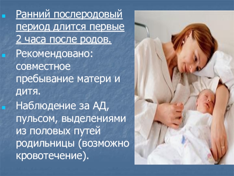 Слайд 3Ранний послеродовый период длится первые 2 часа после родов.
