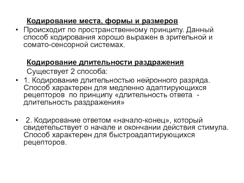 кодирования хорошо выражен в зрительной и сомато-сенсорной системах.