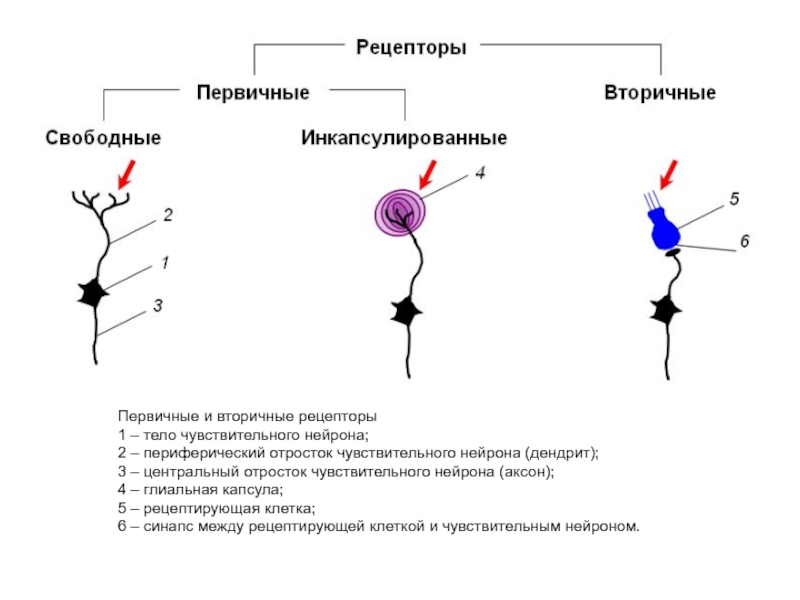 Слайд 8Первичночувствующие рецепторы – это нервные окончания