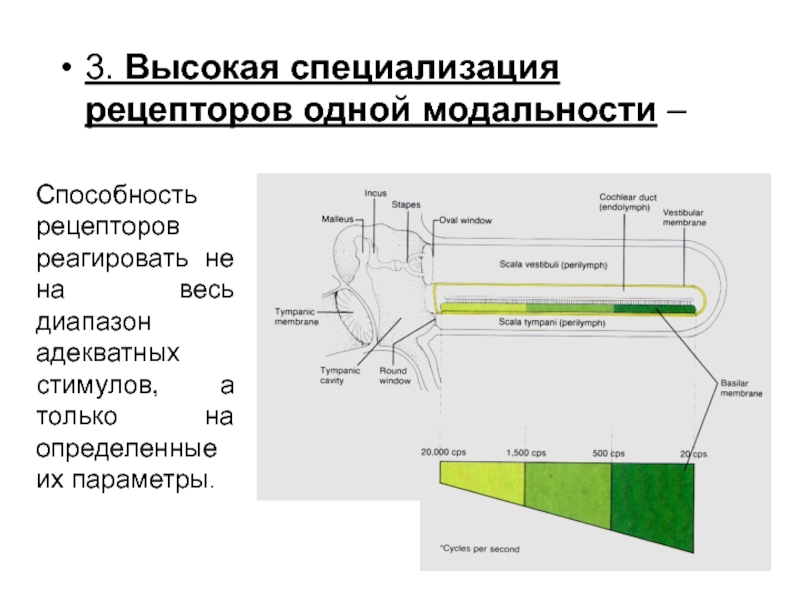 Слайд 133. Высокая специализация рецепторов одной модальности –