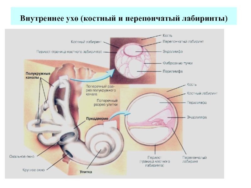 Слайд 26Внутреннее ухо (костный и перепончатый лабиринты)
