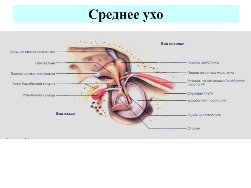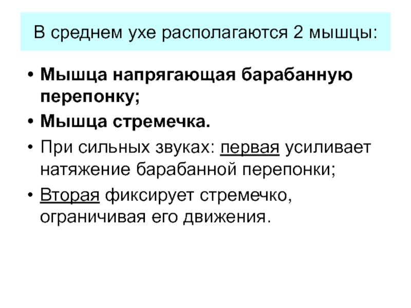 Слайд 8В среднем ухе располагаются 2 мышцы: