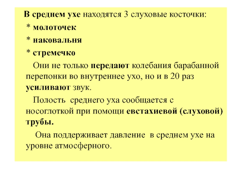 Слайд 6 В среднем ухе находятся 3 слуховые косточки: