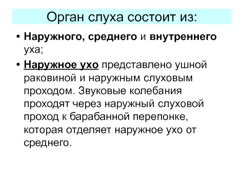 ушной раковиной и наружным слуховым проходом. Звуковые колебания проходят через