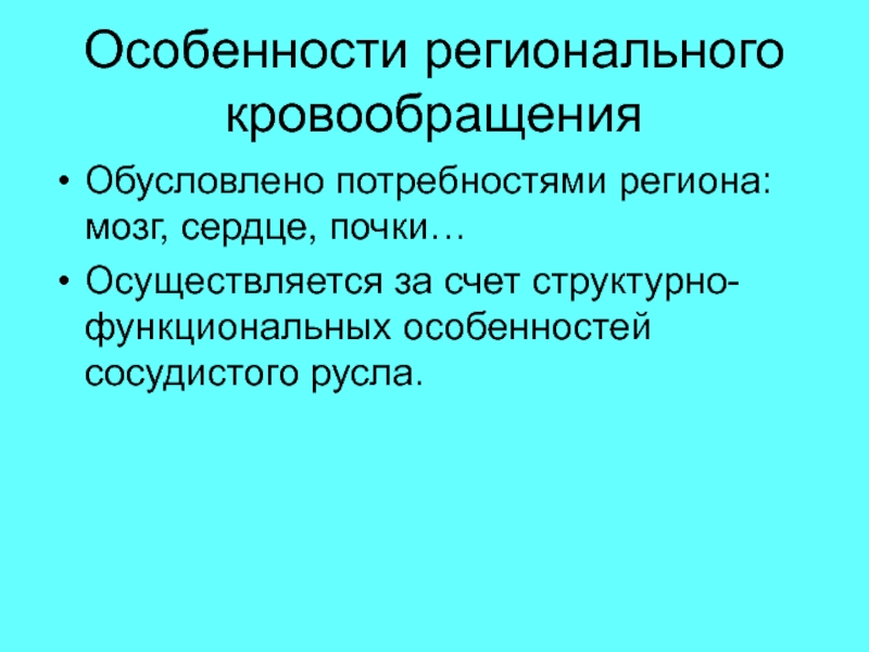 Особенности регионарного кровообращения: коронарный, мозговой, легочный кровоток.