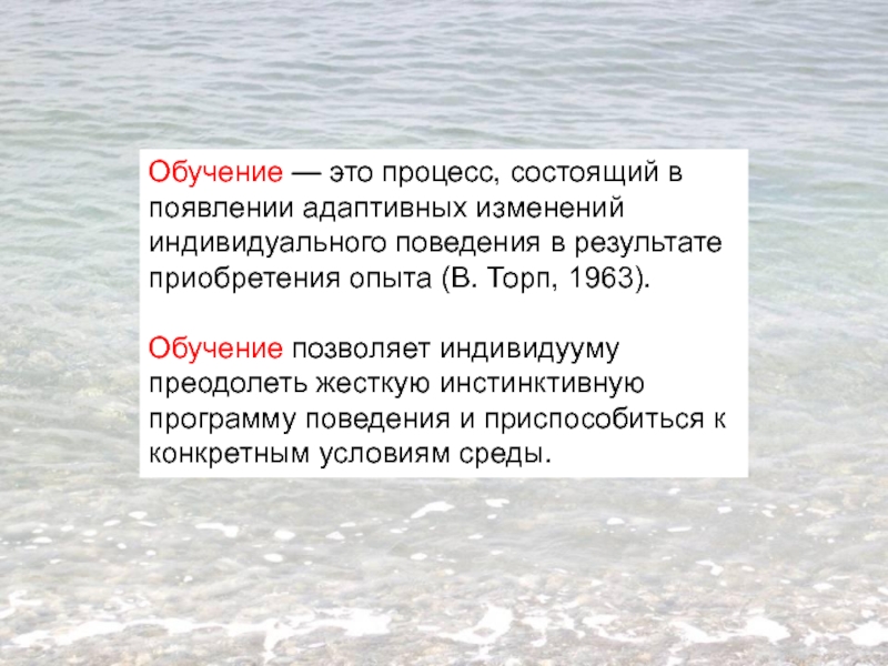 Слайд 22Обучение — это процесс, состоящий в появлении адаптивных изменений индивидуального