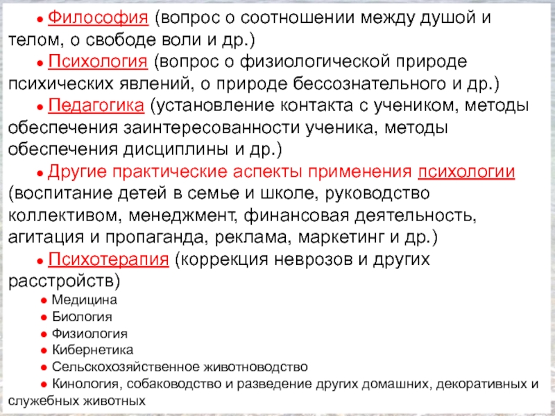 Слайд 10 ● Философия (вопрос о соотношении между душой и телом, о