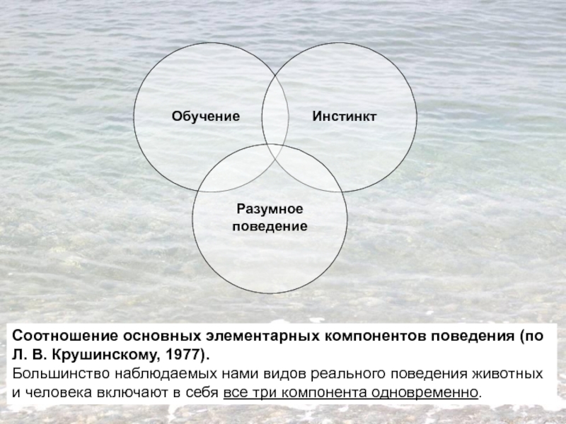 Слайд 17Соотношение основных элементарных компонентов поведения (по Л. В. Крушинскому, 1977).