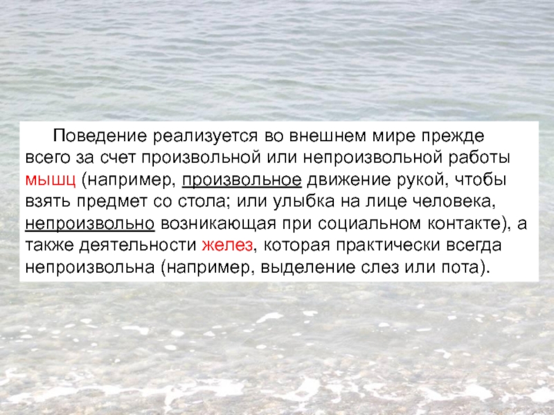Слайд 14 Поведение реализуется во внешнем мире прежде всего за счет произвольной