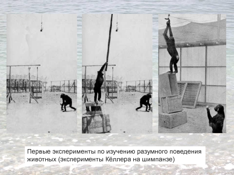 Слайд 31Первые эксперименты по изучению разумного поведения животных (эксперименты Кёллера на