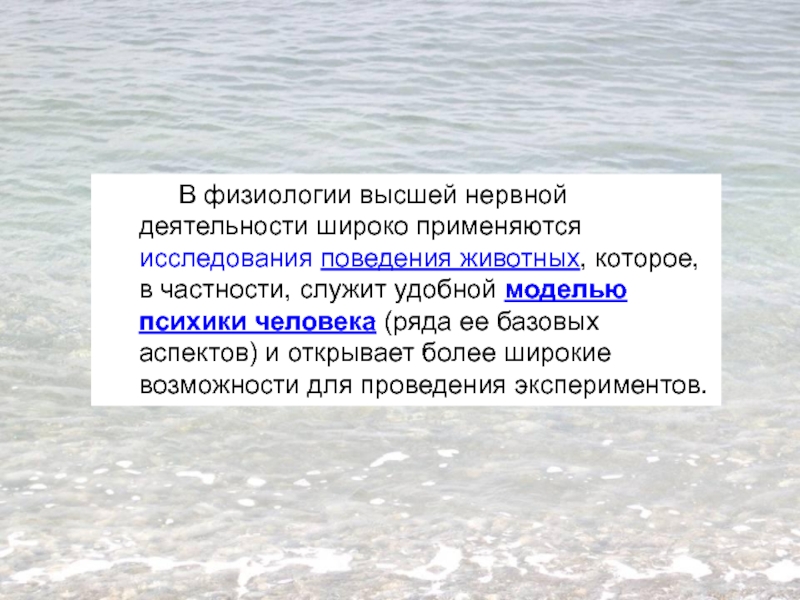 Слайд 7 В физиологии высшей нервной деятельности широко применяются исследования поведения животных,