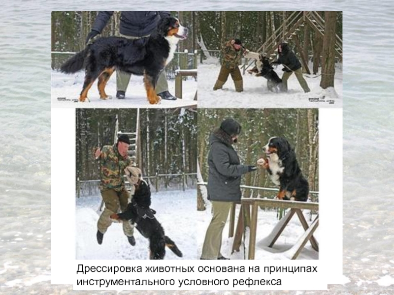 Слайд 26Дрессировка животных основана на принципах инструментального условного рефлекса