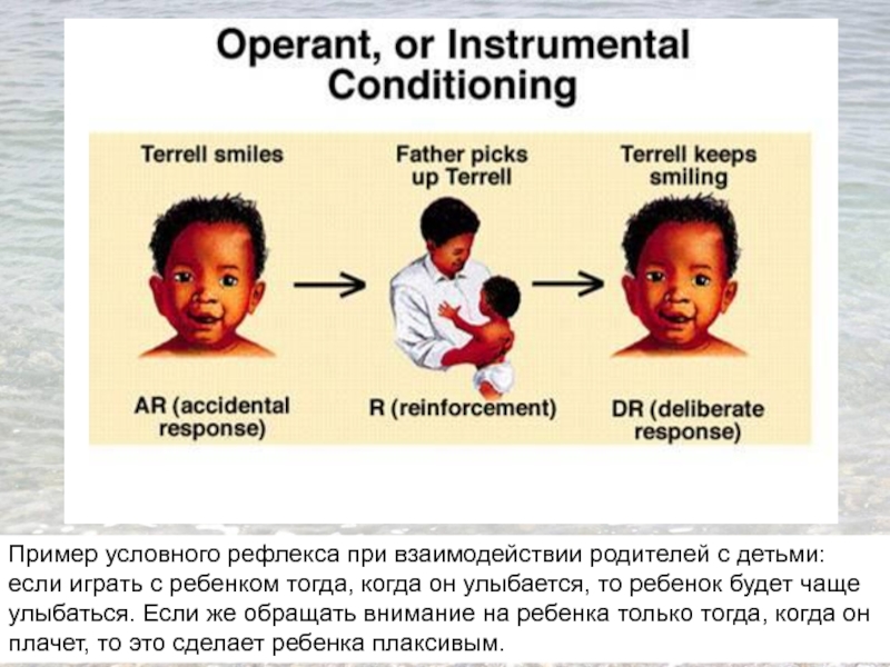 Слайд 27Пример условного рефлекса при взаимодействии родителей с детьми: если играть