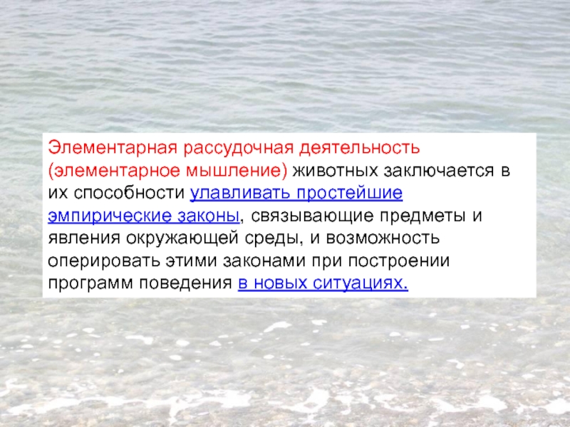 Слайд 30Элементарная рассудочная деятельность (элементарное мышление) животных заключается в их способности