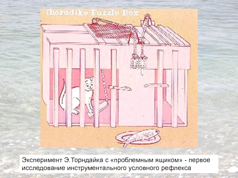 Слайд 25Эксперимент Э.Торндайка с «проблемным ящиком» - первое исследование инструментального условного