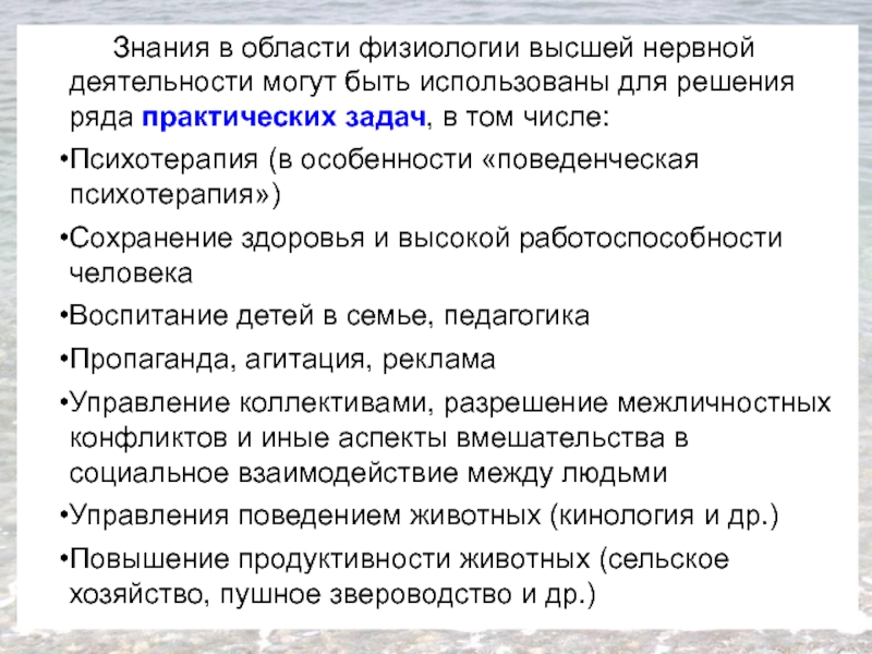 Слайд 11 Знания в области физиологии высшей нервной деятельности могут быть использованы