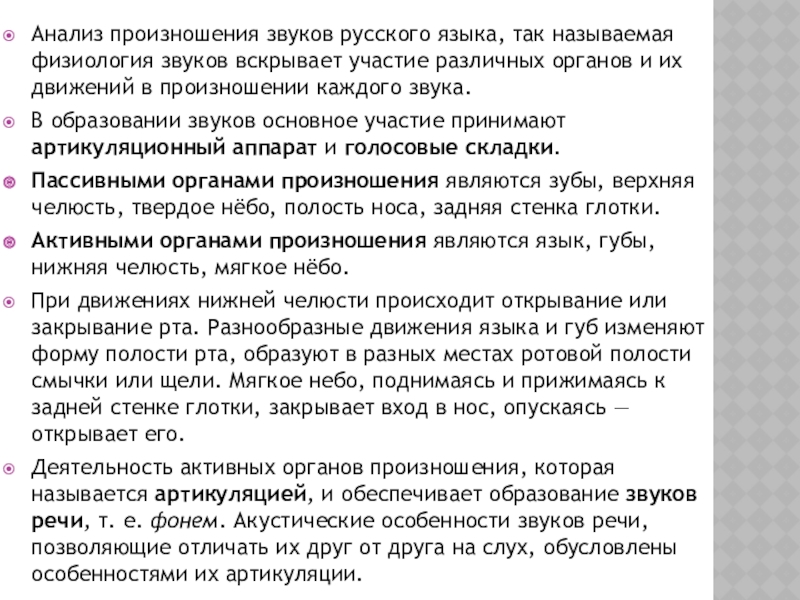Слайд 2Анализ произношения звуков русского языка, так называемая физиология звуков вскрывает