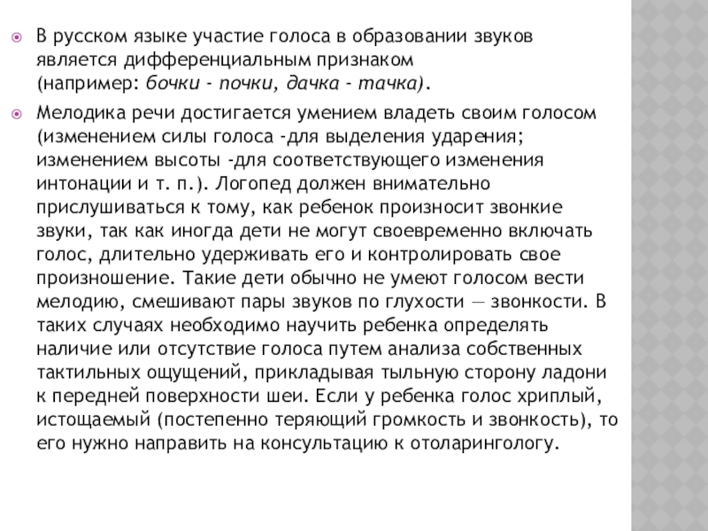 Слайд 8В русском языке участие голоса в образовании звуков является дифференциальным