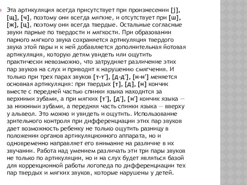 Слайд 17Эта артикуляция всегда присутствует при произнесении [j], [щ], [ч], поэтому