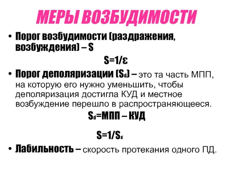 Слайд 6МЕРЫ ВОЗБУДИМОСТИ