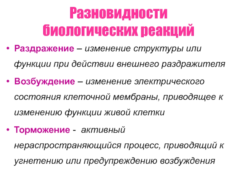 Раздражение – изменение структуры или функции при действии