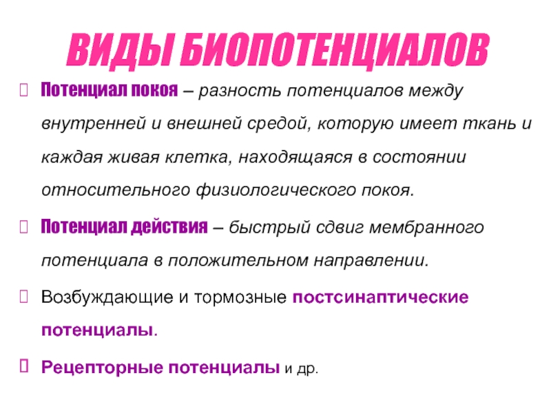 Слайд 23ВИДЫ БИОПОТЕНЦИАЛОВ