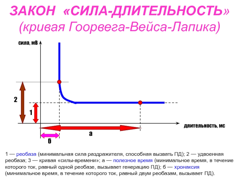 1 — реобаза (минимальная сила раздражителя, способная вызвать