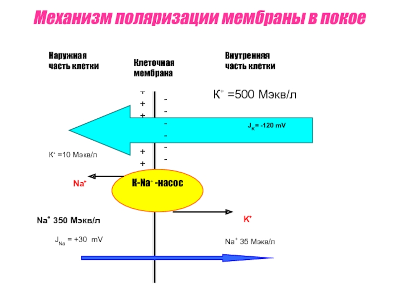 Слайд 25Механизм поляризации мембраны в покое