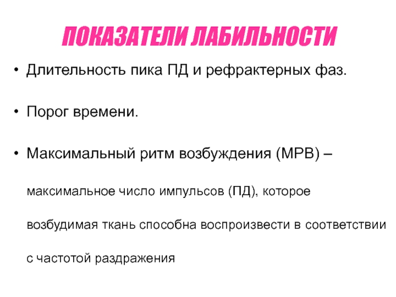 Слайд 7ПОКАЗАТЕЛИ ЛАБИЛЬНОСТИ