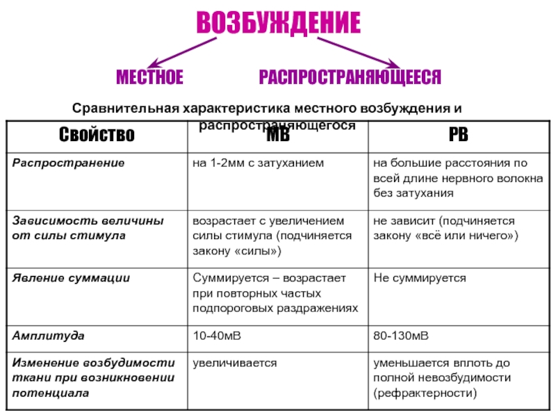 Сравнительная характеристика местного возбуждения и распространяющегося