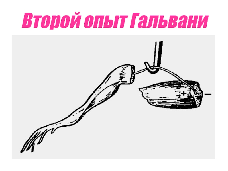 опытов с лапкой лягушки. Сначала он показал, что лапка лягушки сокращается под действием грозовых разрядов электричества. Он подвешивал лапку к металлическому крючку и подводил к нему ток от молниеотвода. Всякий раз, когда поблизости была гроза или просто проходили грозовые облака, лапка сокращалась. Следующий опыт Гальвани был еще более интересным. На медных крючках он подвешивал лапки лягушек на железную ограду своего балкона. Лапки покачивались на ветру и время от времени касались железных прутьев балкона. При таких прикосновениях мышцы лапок тотчас же сокращались. Гальвани считал, что мышцы сокращаются под влиянием «животного» электричества, которое рождается в нервах, а медная и железная проволоки — это только замыкающие цепь проводники.