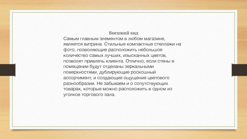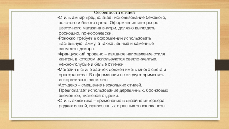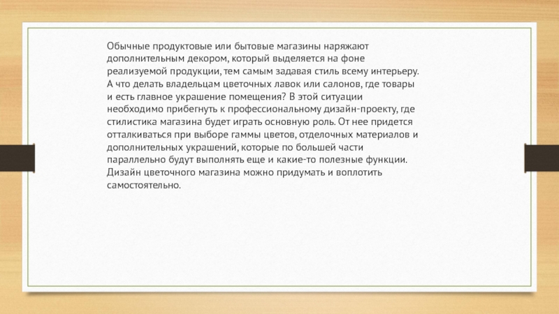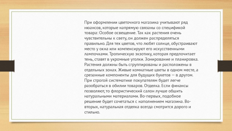 Слайд 4При оформлении цветочного магазина учитывают ряд нюансов, которые напрямую связаны