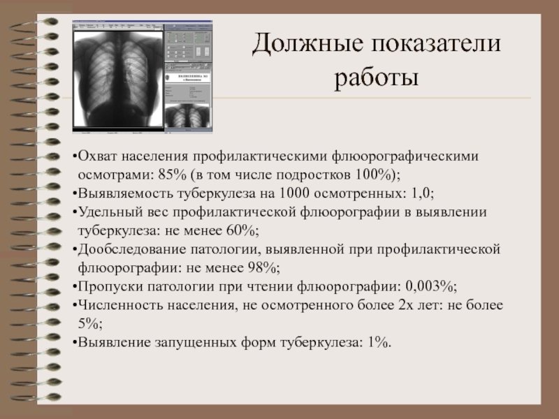 Дообследование патологии, выявленной при профилактической флюорографии: не менее 98%;