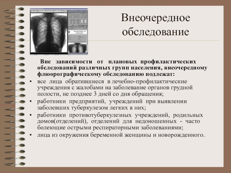 от плановых профилактических обследований различных групп населения, внеочередному флюорографическому