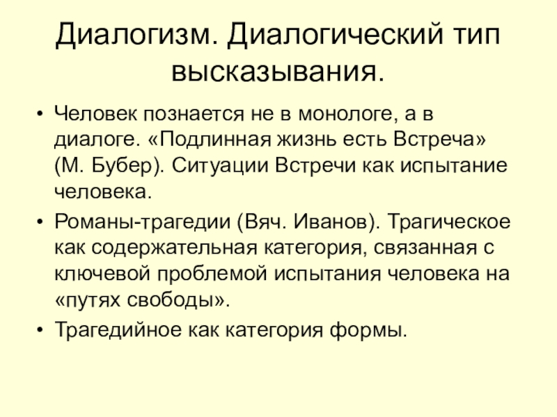 Диалогизм. Диалогический тип высказывания.Человек познается не в монологе, а в диалоге. «Подлинная жизнь есть Встреча» (М. Бубер).