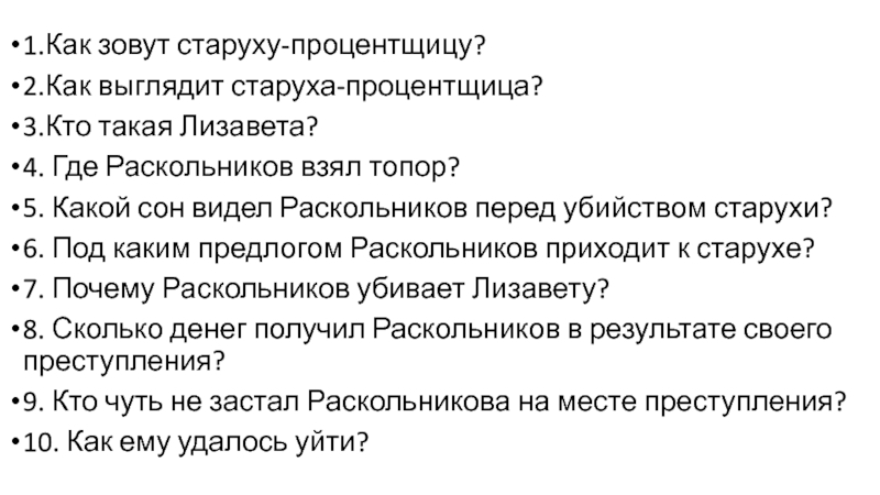 Слайд 81.Как зовут старуху-процентщицу?